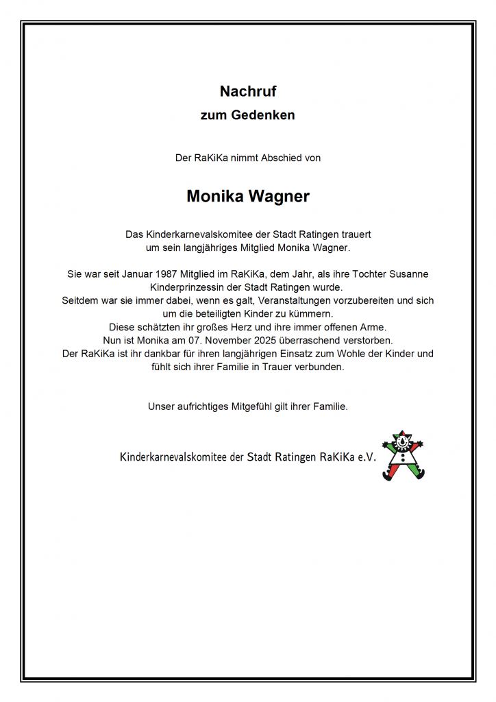 Das Kinderkarnevalskomitee der Stadt Ratingen RaKiKa e.V. pflegt und fördert den Kinnderkarneval im heimatlichen Karnevalsbrauchtum mit der Kinderprinzenkürung, dem Kinderkarnevalszug, sowie […]