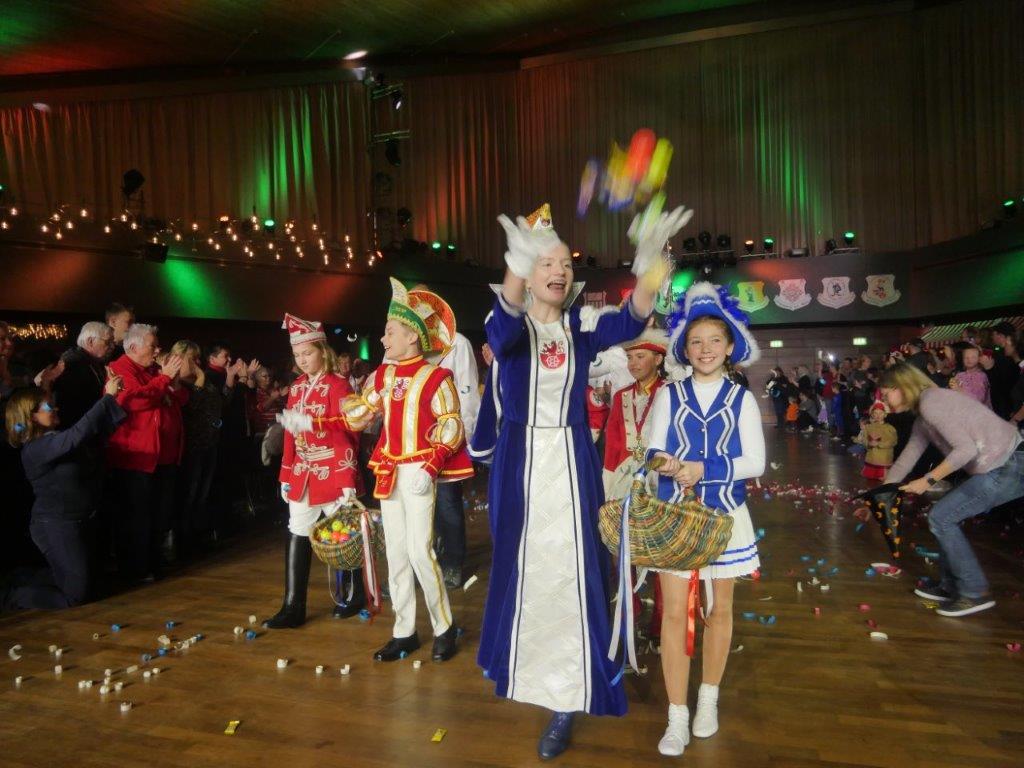 Funken Rot-Wiss, zog das zu kürende Kinderprinzenpaar mit ihren Schirmherren, der Sparkasse HRV,