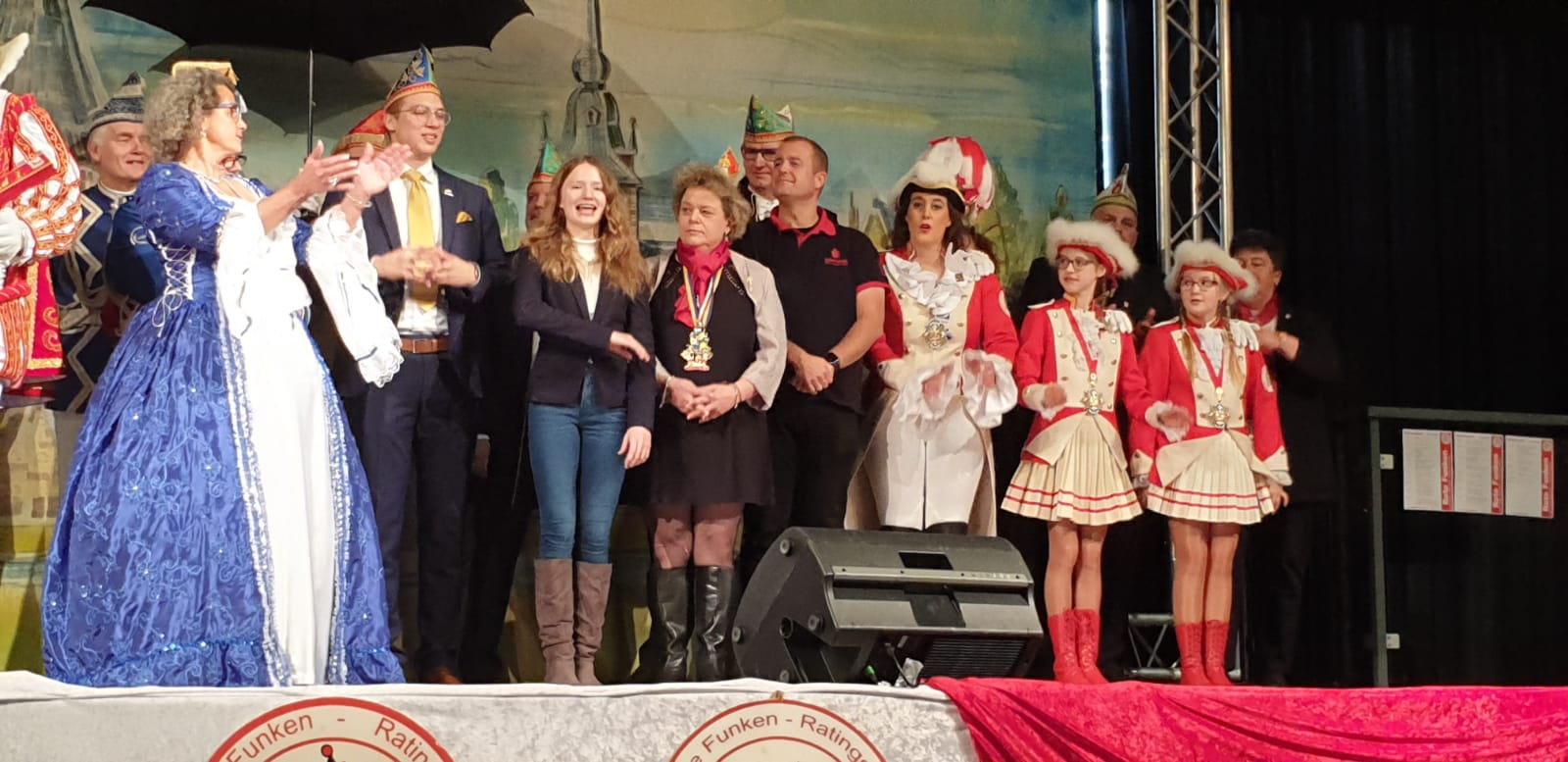Mit von der Partie war auch unsere diesjährige Kinderprinzessin Nele I. (Matyssek), welche Ihrer Inthronisierung am 05.01.2020 schon entgegenfiebert und heute bereits ein wenig Bühnenluft schnuppern konnte. Ihr zur Seite standen unsere Schirmherren von der Sparkasse HRV in Vertretung durch Mattias Stephany und Sandra Cuena Pazos, die Schwester von Prinzessin Claudia II.